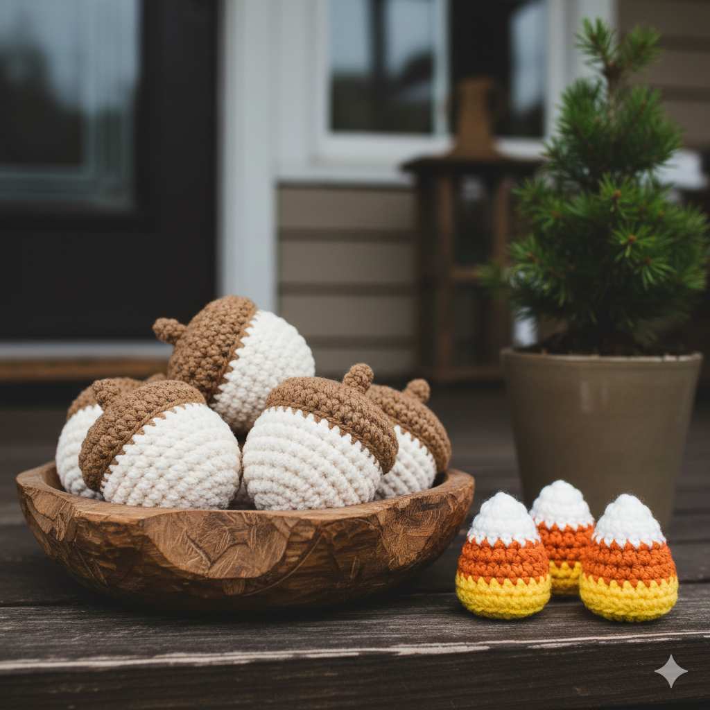 - Acorn Amigurumi & Mini Crochet Candy Corn Plushies: