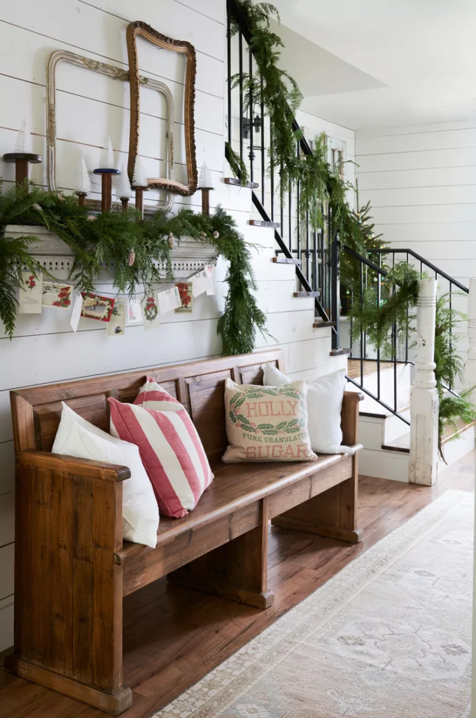 This one feels like stepping back in time. I snagged a vintage sled at a flea market, leaned it by my door, added some greenery and a bow, and suddenly it looked like a winter postcard. Even if you don’t actually sled (no judgment), it adds such a fun, nostalgic farmhouse touch.