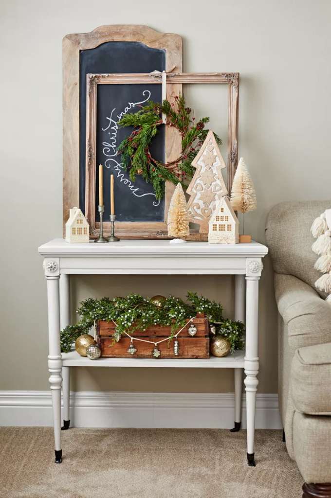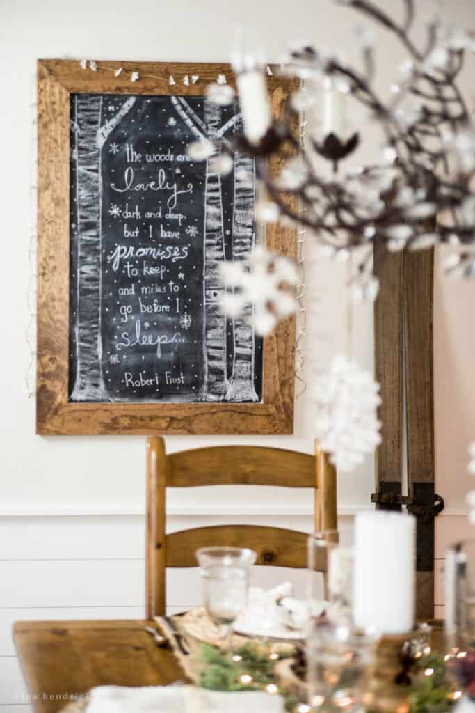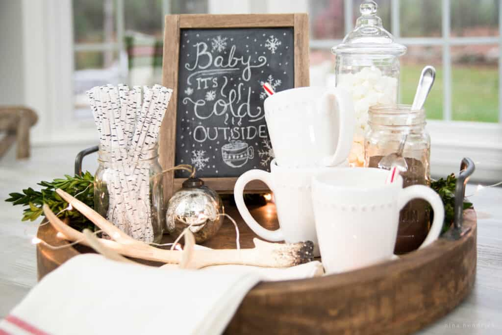 I love having a little chalkboard with sayings like “Merry & Bright” or “Hot Cocoa Served Here.”